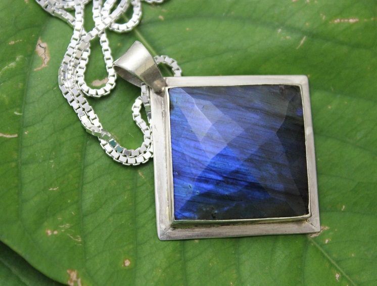 Natural Labradorite pendant, Silver pendant, Square gemstone pendant